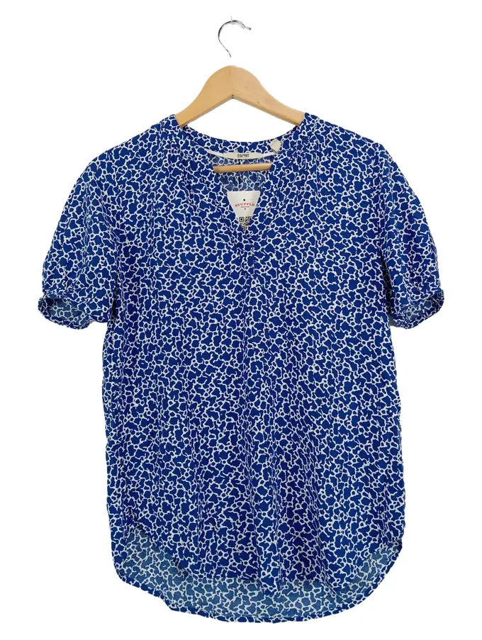 Damen Bluse V-Ausschnitt Kurzarm Blau Grafisch Gr. XS Casual