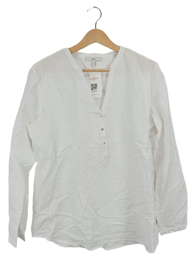 Damen Bluse Weiß Gr. 36 S Langarm V-Ausschnitt Baumwolle