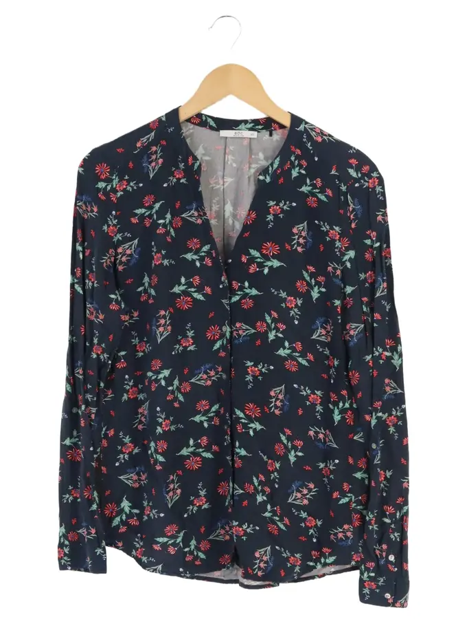 Damen Bluse XS/32 Blau Blumenmuster Klassisch Casual Langarm Viskose