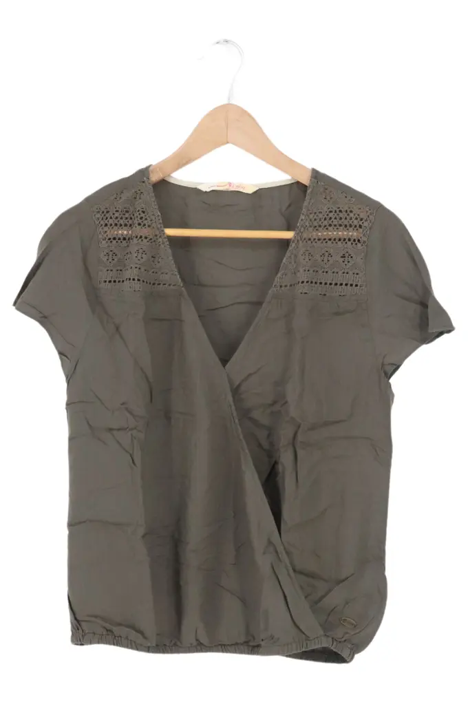 Damen Bluse XS/34 Oliv Casual Bohème Wickelbluse Häkelei