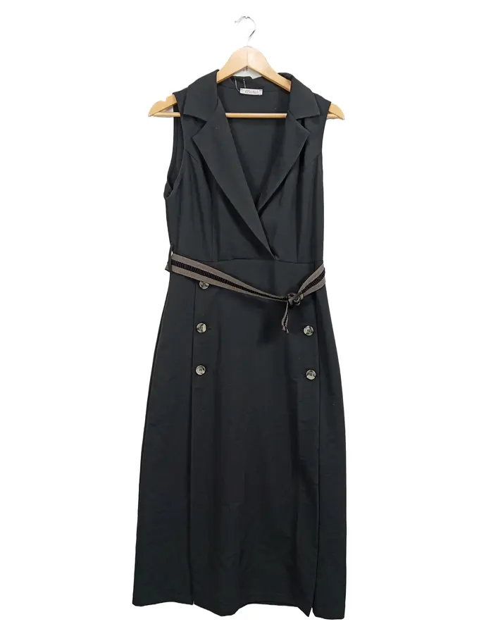 Damen Blusenkleid ärmellos Midi Gr. 38 M Schwarz