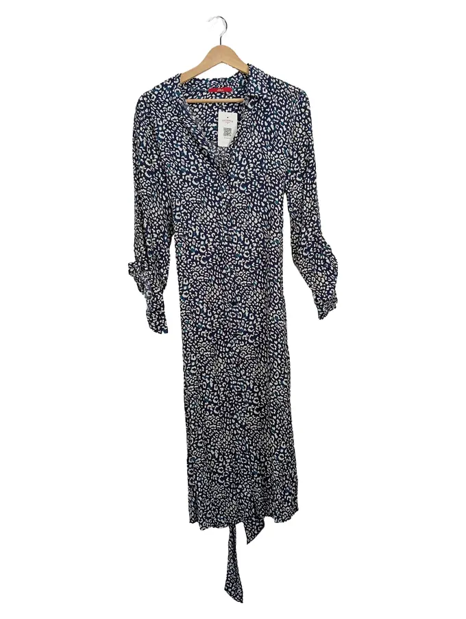 Damen Blusenkleid Animal Print Gr. 38 M Midi Viskose Blau