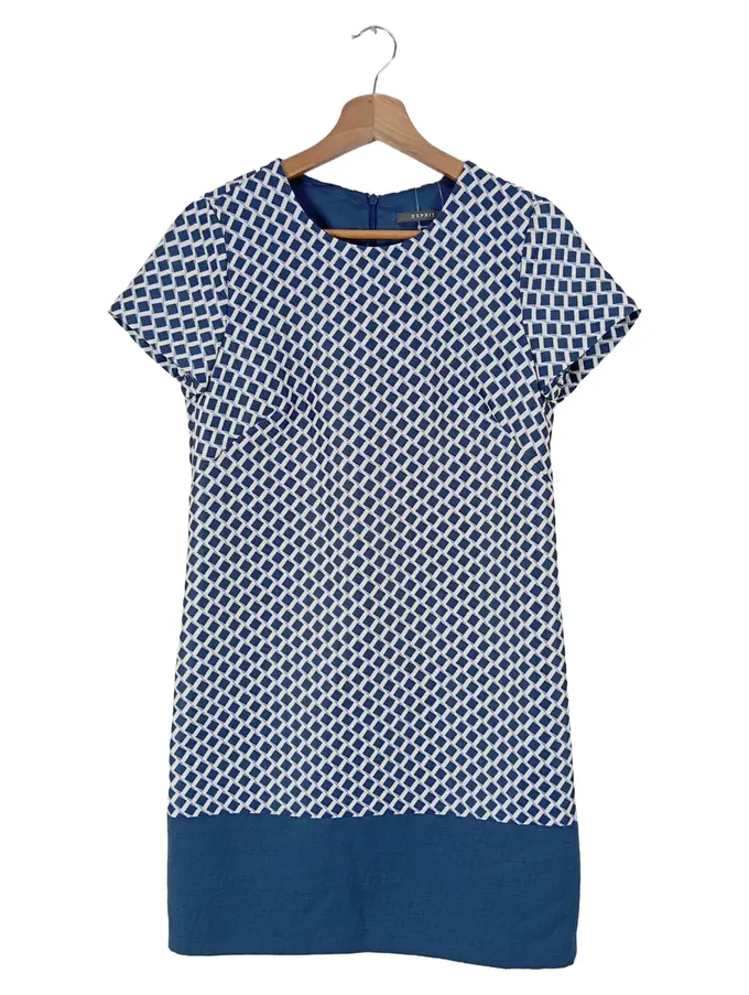 Damen Blusenkleid Gr. 34/XS Blau Grafisch Business Elegant