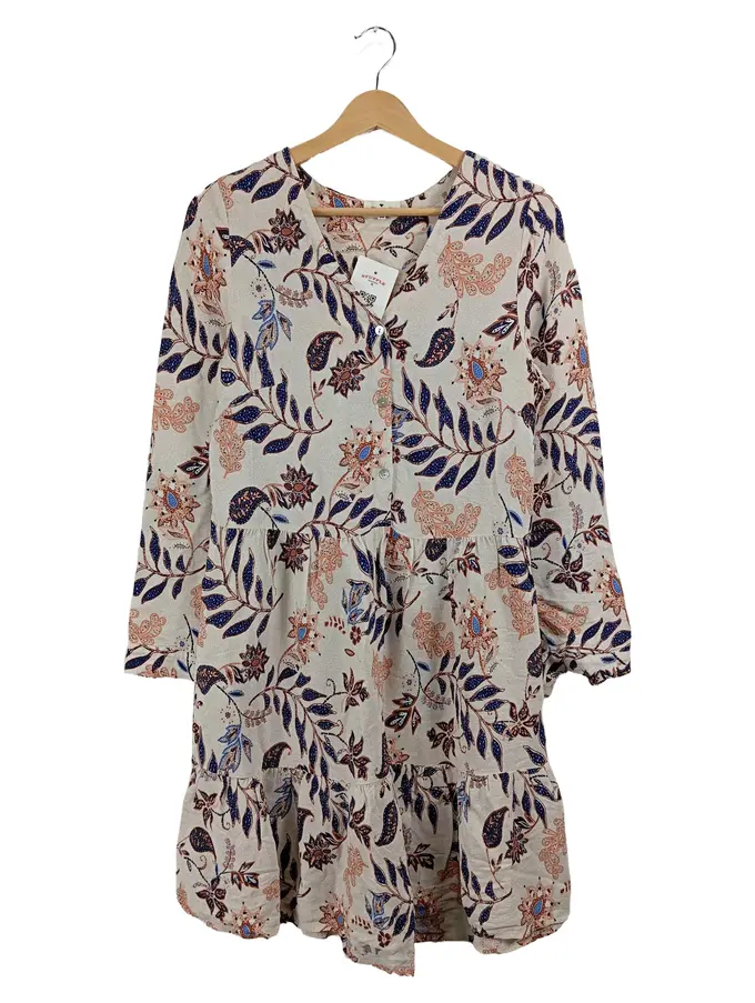 Damen Blusenkleid Gr. 36 S Beige Blumenmuster Viskose Midikleid
