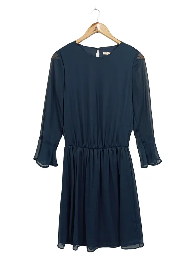 Damen Blusenkleid Gr. 36/S Blau Elegant Polyester Midikleid