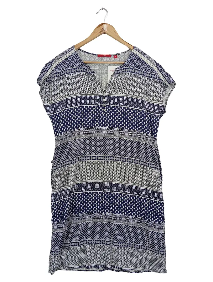Damen Blusenkleid Gr. 38/M Blau Gemustert Casual Vintage