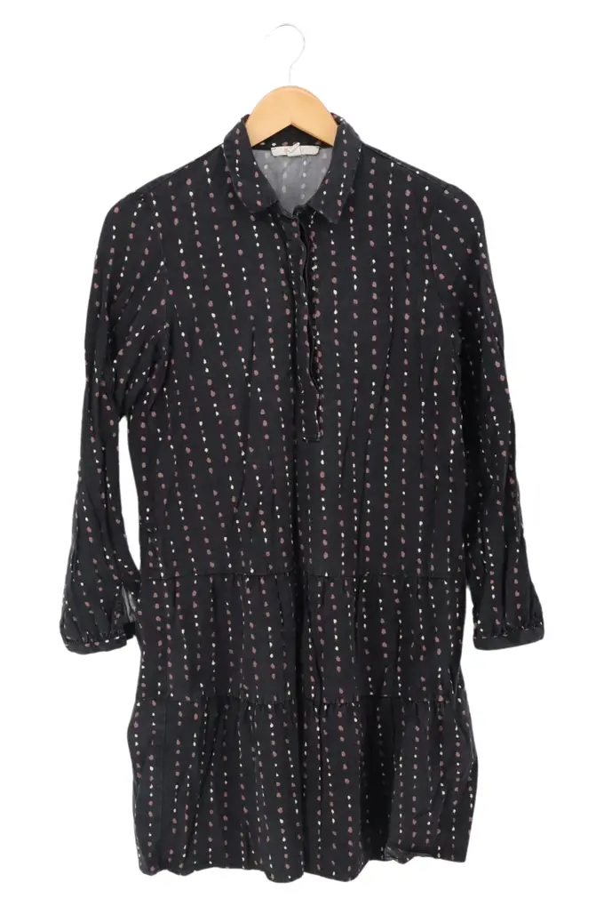Damen Blusenkleid Gr. 38/M Schwarz Gepunktet Casual Vintage