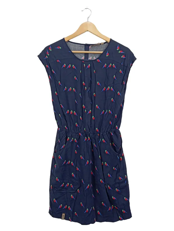 Damen Blusenkleid Papageienmuster Gr. 34/XS Casual Mehrfarbig