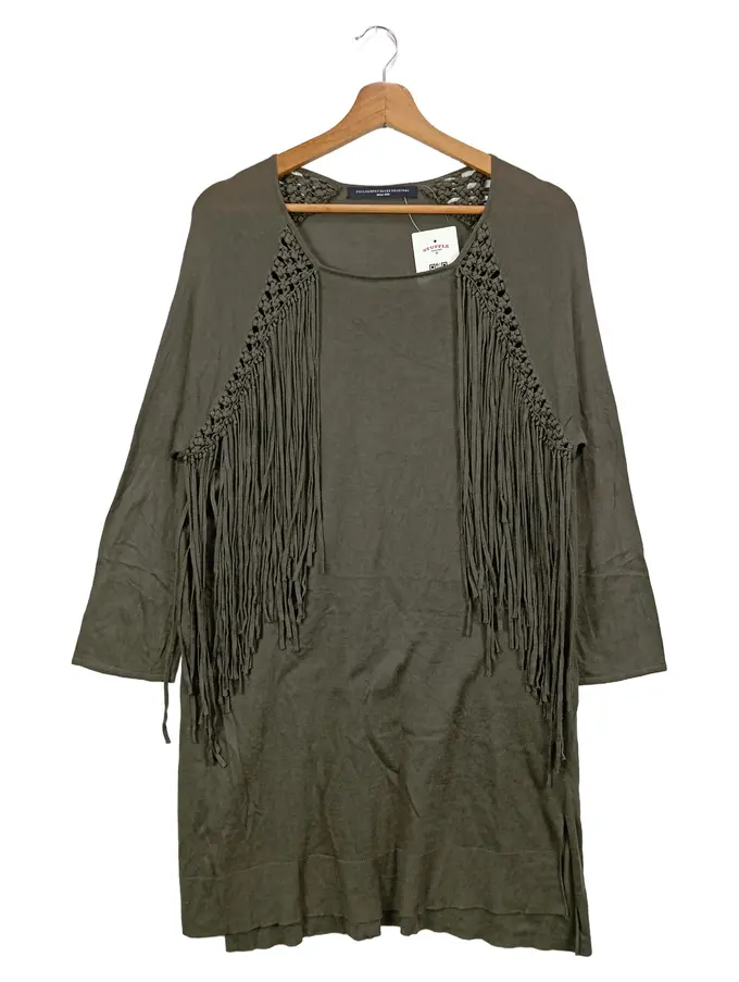 Damen Blusenkleid XL Grün Bohemian Fransen