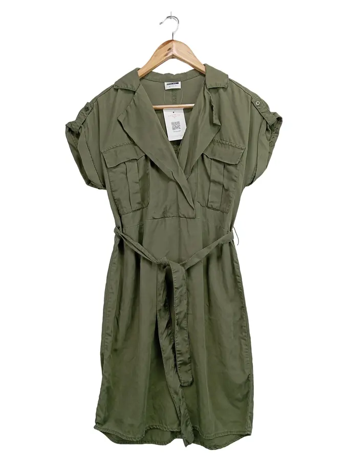 Damen Blusenkleid XS 34 Grün Casual Streetwear Baumwolle