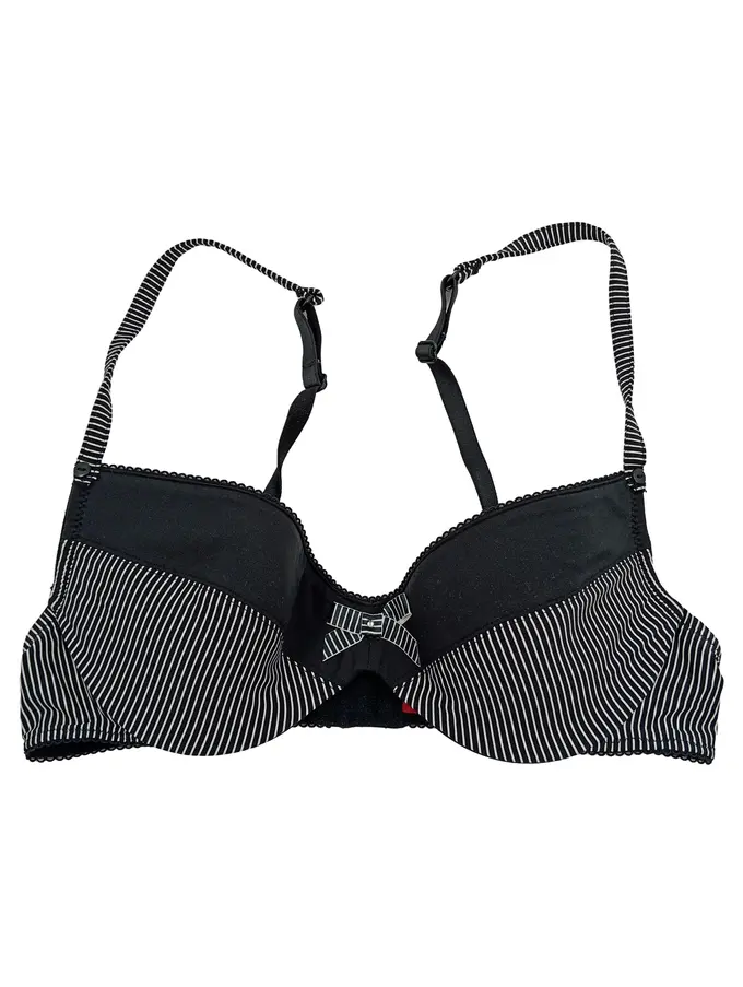 Damen Bügel-BH 80A Schwarz Gestreift Schleife