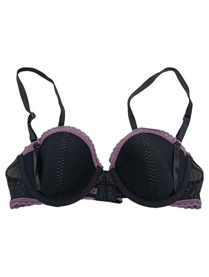 Damen Bügel BH 80A Schwarz Lila Spitze Push-up