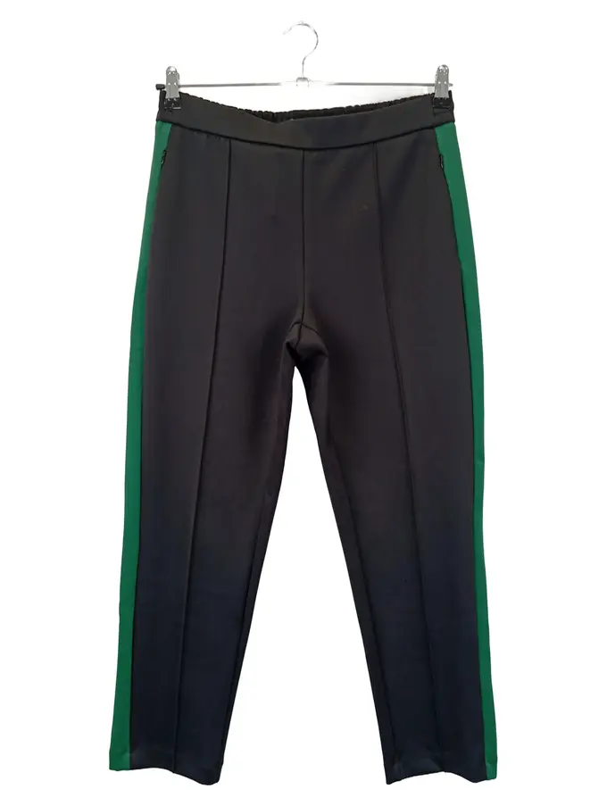 Damen Business Anzughose Gr. 40 L Schwarz mit grünen Seitenstreifen