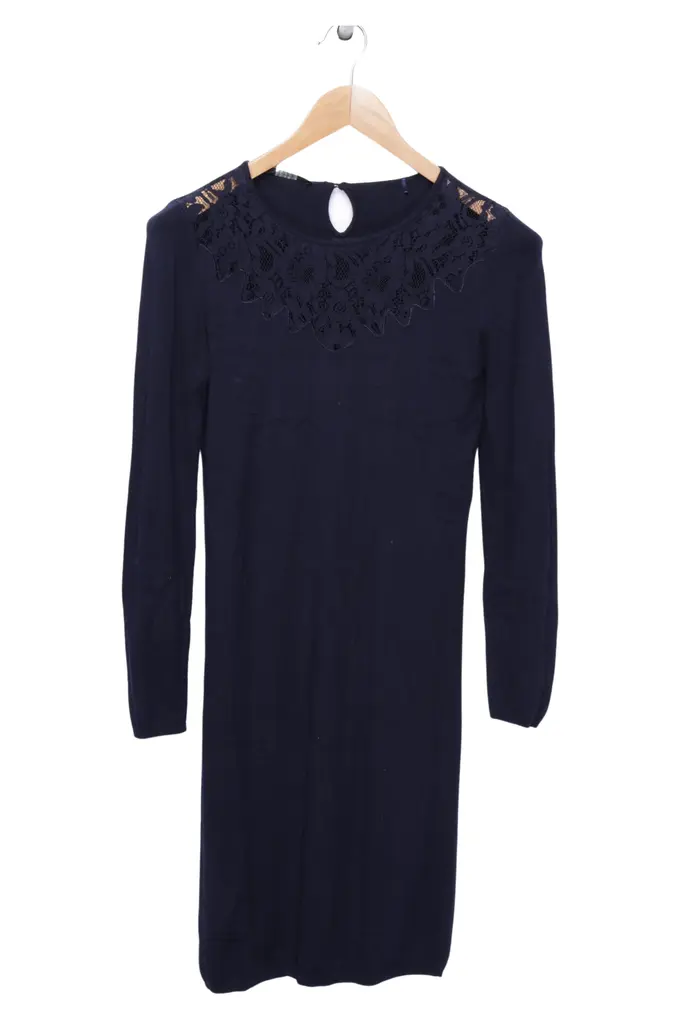 Damen Businesskleid Blau Spitzendetail Langarm Elegant Gr. M/38