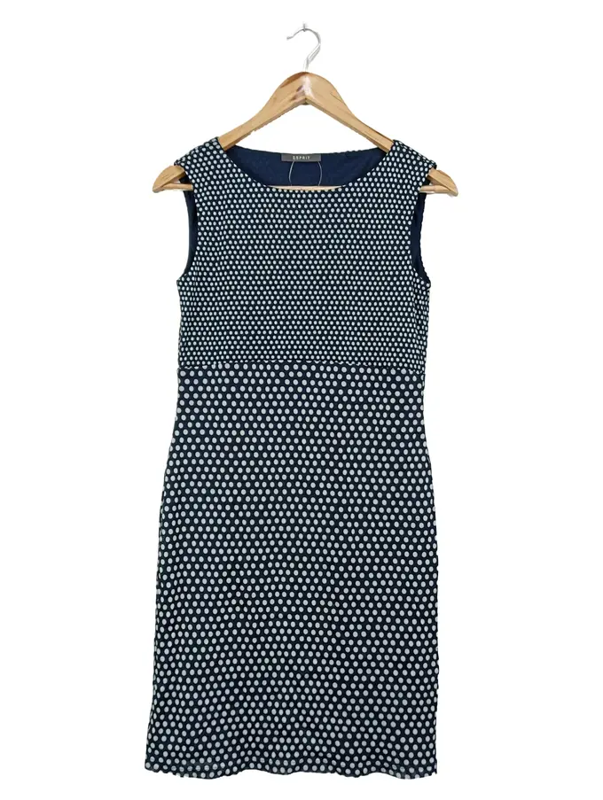 Damen Businesskleid Gr. 36/S Blau gepunktet ärmellos elegant