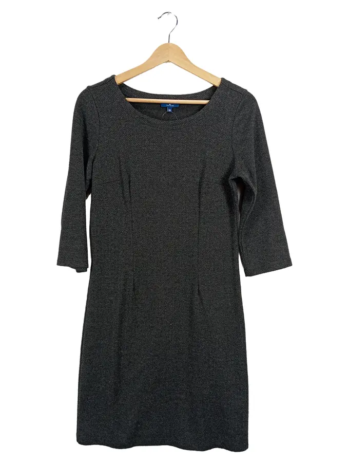 Damen Businesskleid Gr. 38 Grau Fischgrät 3/4-Arm