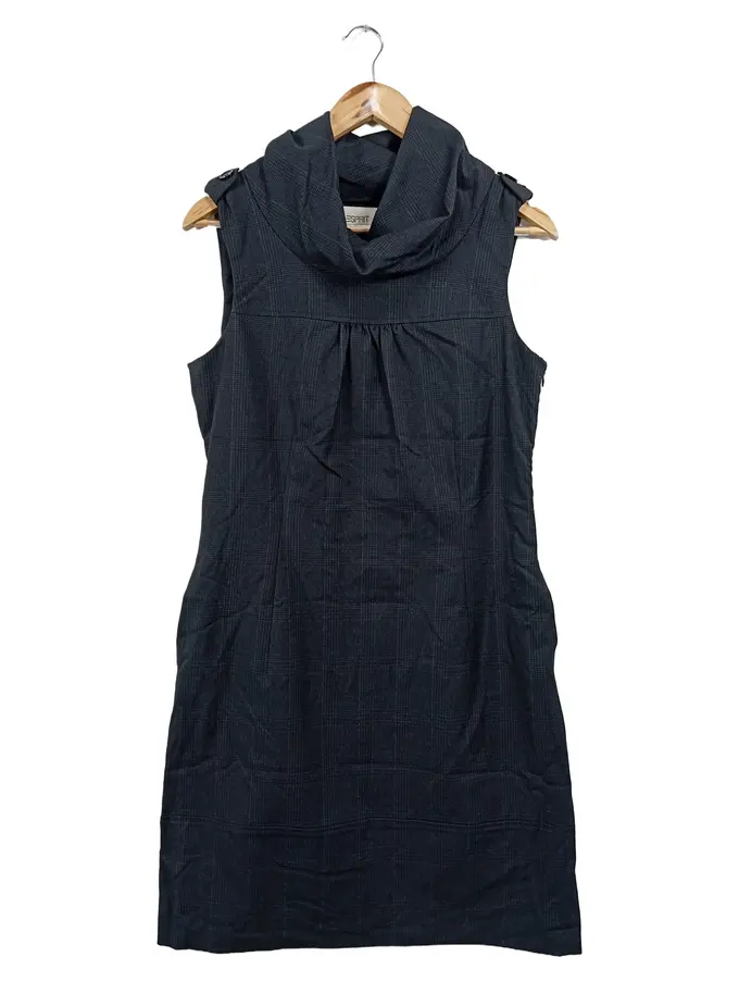 Damen Businesskleid Gr. 38/M Grau Kariert Ärmellos Elegant