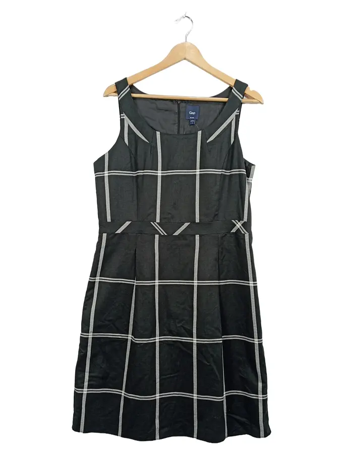 Damen Businesskleid Gr. 42/XL Kariert Grau Ärmellos Klassisch