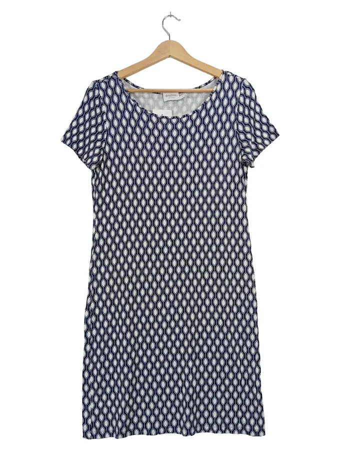Damen Businesskleid Kurzarm Blau Gr. 36/S Grafisches Muster