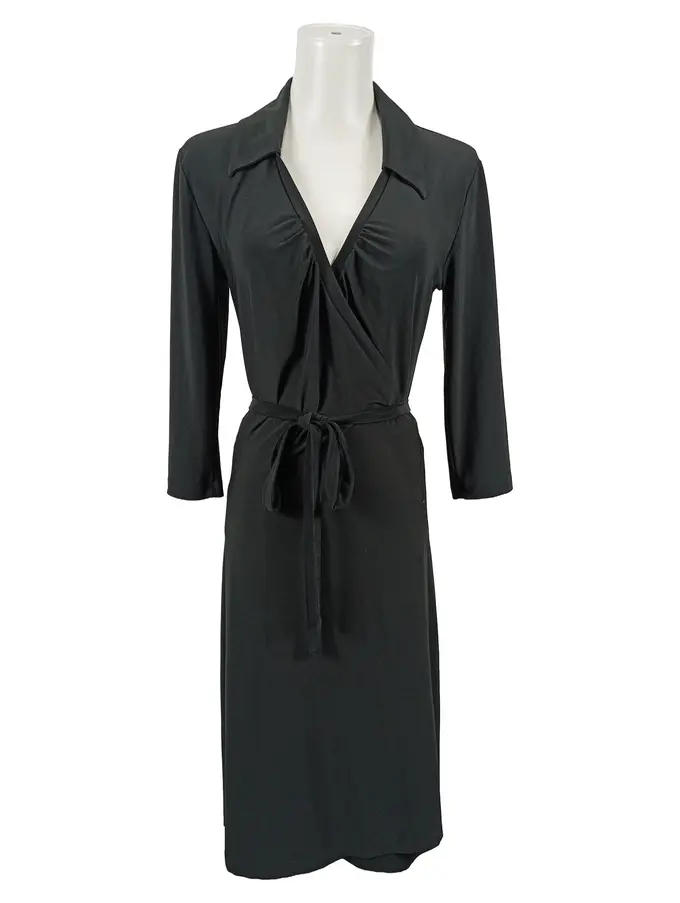 Damen Businesskleid Wickelkleid Gr. 38/M Schwarz Elegant 3/4-Arm