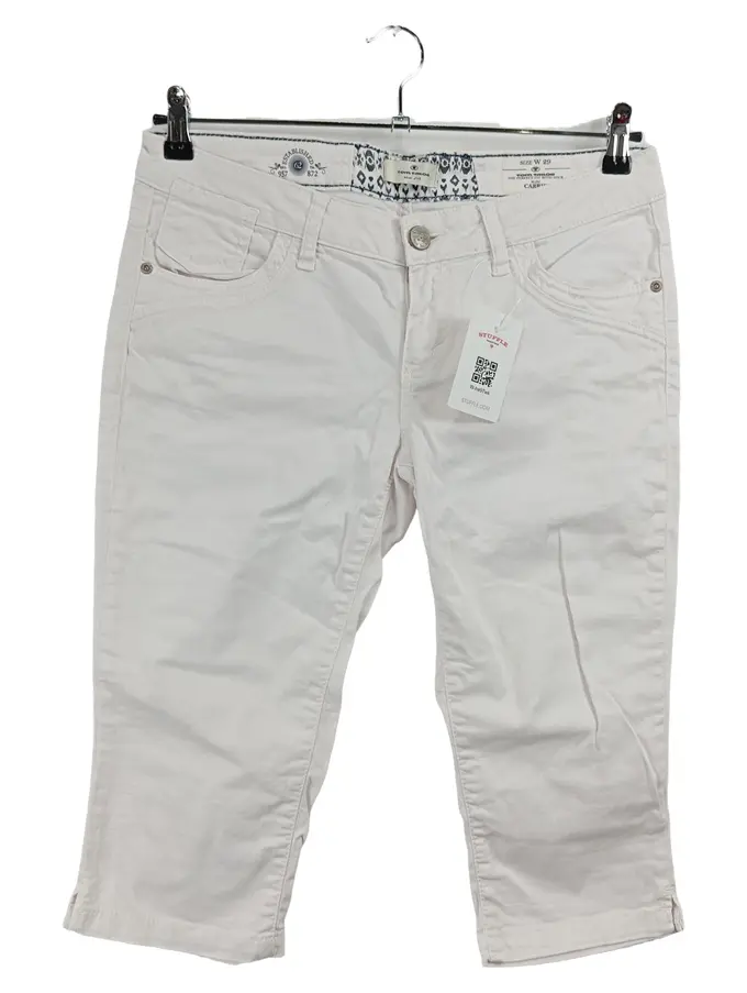Damen Capri Hose W29 38 M Weiß Stoffhose Bermuda