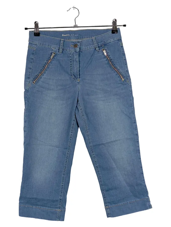 Damen Capri Jeans Hose Blau Gr. 38 Casual Reißverschluss-Details