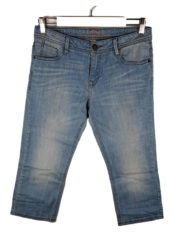 Damen Capri Jeans Regular Fit Blau Gr. W28 L21 Baumwolle