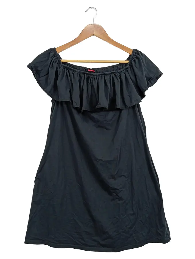 Damen Carmenkleid schulterfrei Rüschen Gr. 40 Schwarz Lyocell