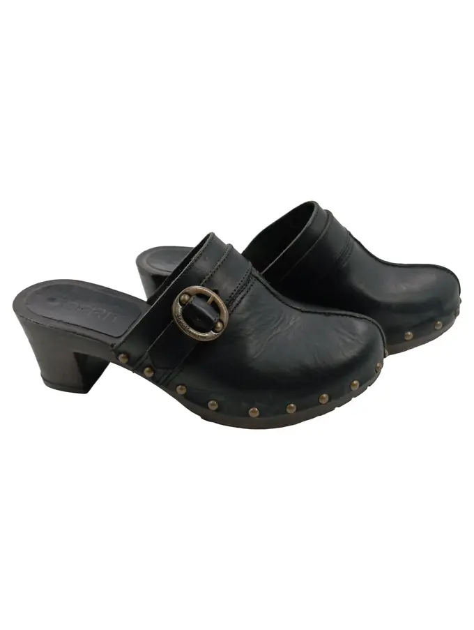 Damen Clogs Slipper Leder Schwarz Gr. 38