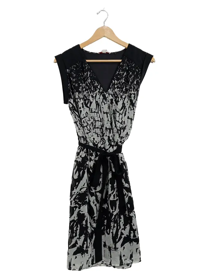 Damen Cocktailkleid Gr. 36 Schwarz Abstrakt Muster Bindegürtel