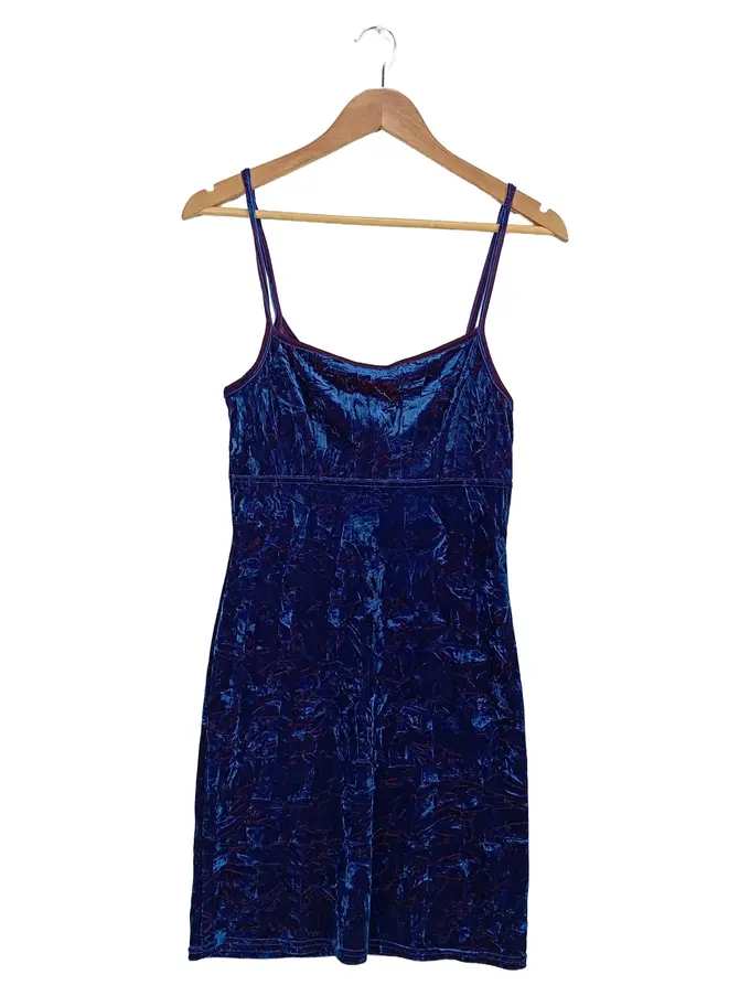 Damen Cocktailkleid Samt Blau Gr. 38/M Trägerkleid Vintage Elegant