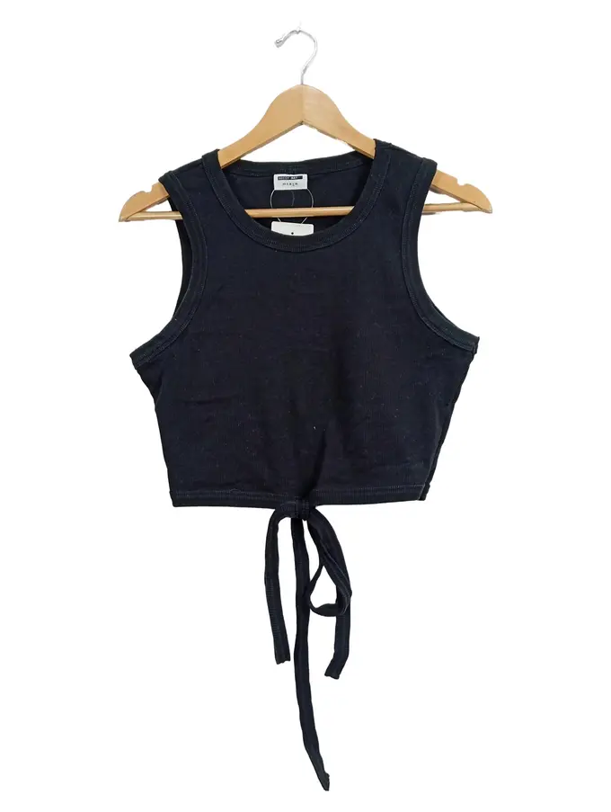 Damen Crop Top mit Schnürung Schwarz Gr. 40/L Rippstrick Modisch