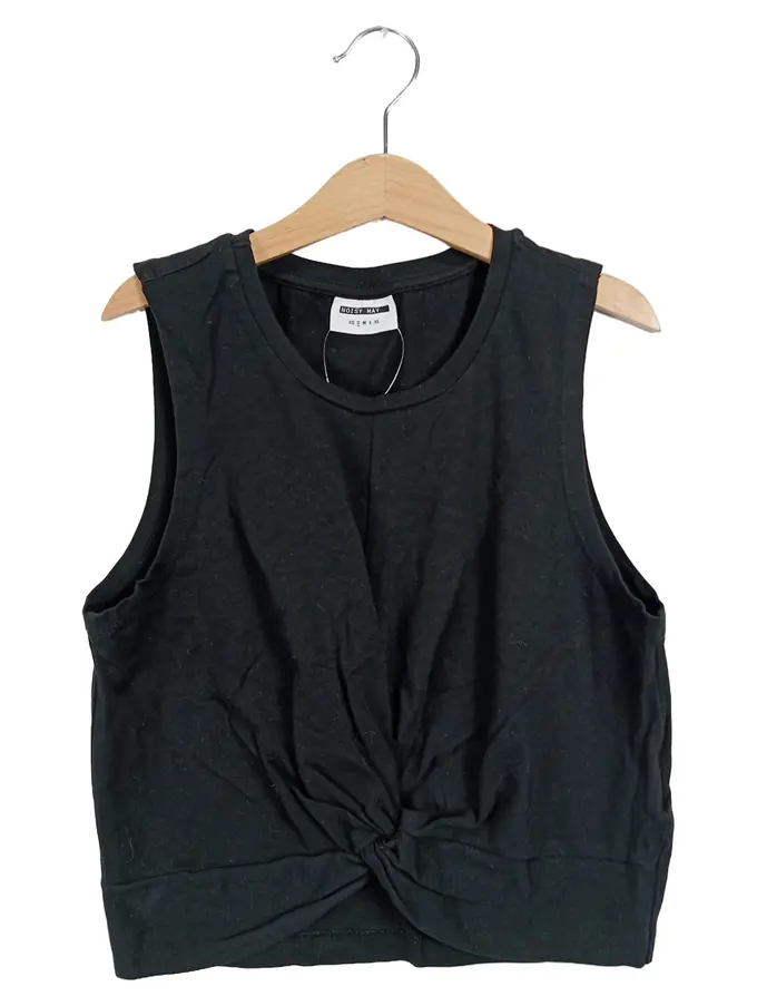 Damen Crop Top Schwarz Gr. 36/S mit Knoten vorne