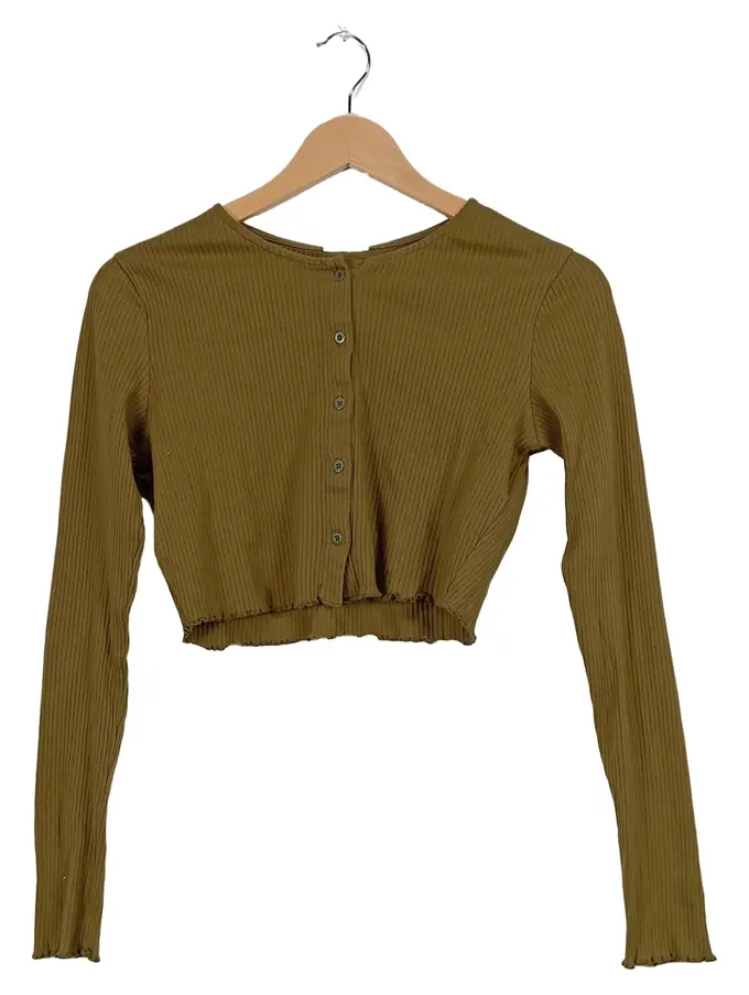 Damen Cropped Strickjacke Rippstrick Oliv Gr. S