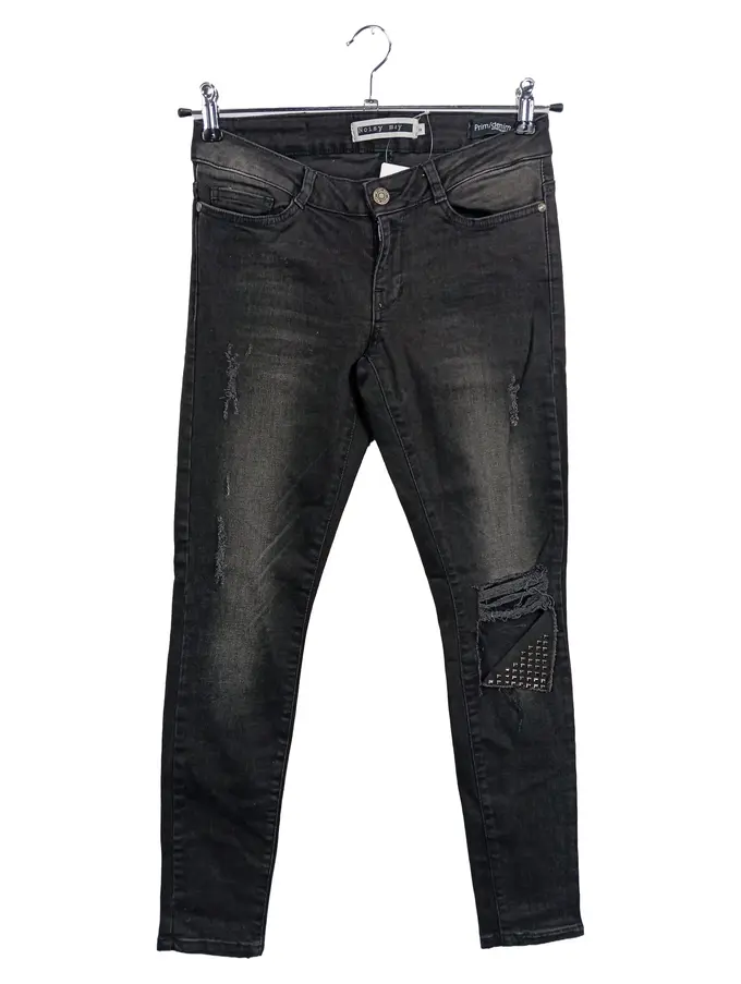 Damen Destroyed Jeans Schwarz W28/36/S Casual Used Look Nieten