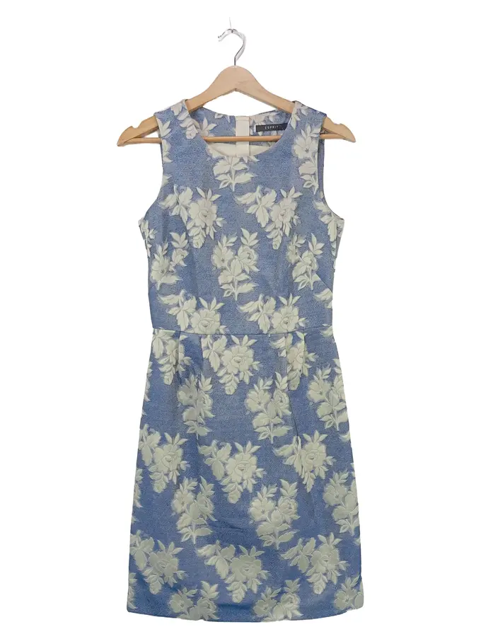 Damen Etuikleid Gr. 34 Blau Blumenmuster ärmellos feminin