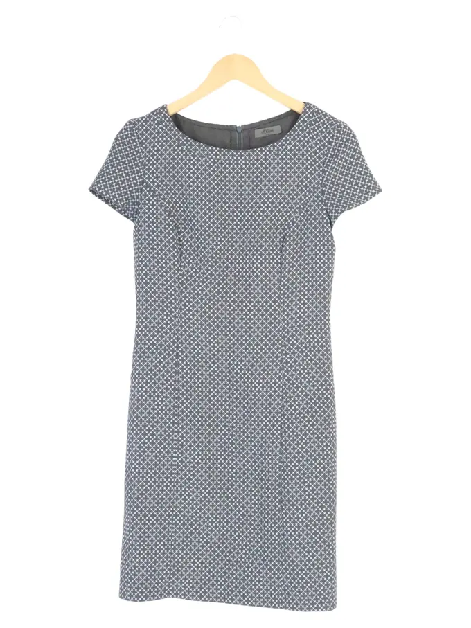 Damen Etuikleid Gr. 36/S Blau Grafisch Business Kleid 91cm Länge