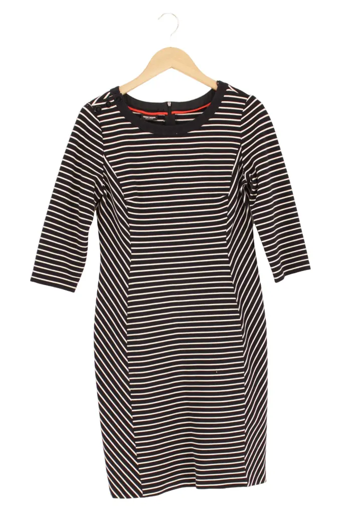 Damen Etuikleid Gr. 36/S Gestreift Business Midi 3/4-Arm Schwarz Weiß