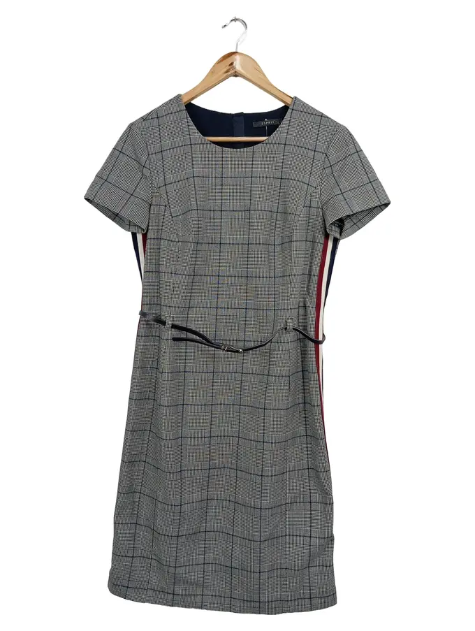 Damen Etuikleid Gr. 36/S Grau Kariert Business Elegant Midikleid