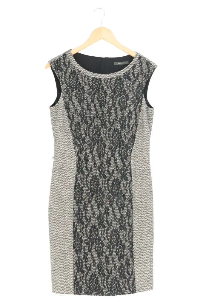 Damen Etuikleid Gr. 38/M Business Elegant Grau Spitze Reißverschluss