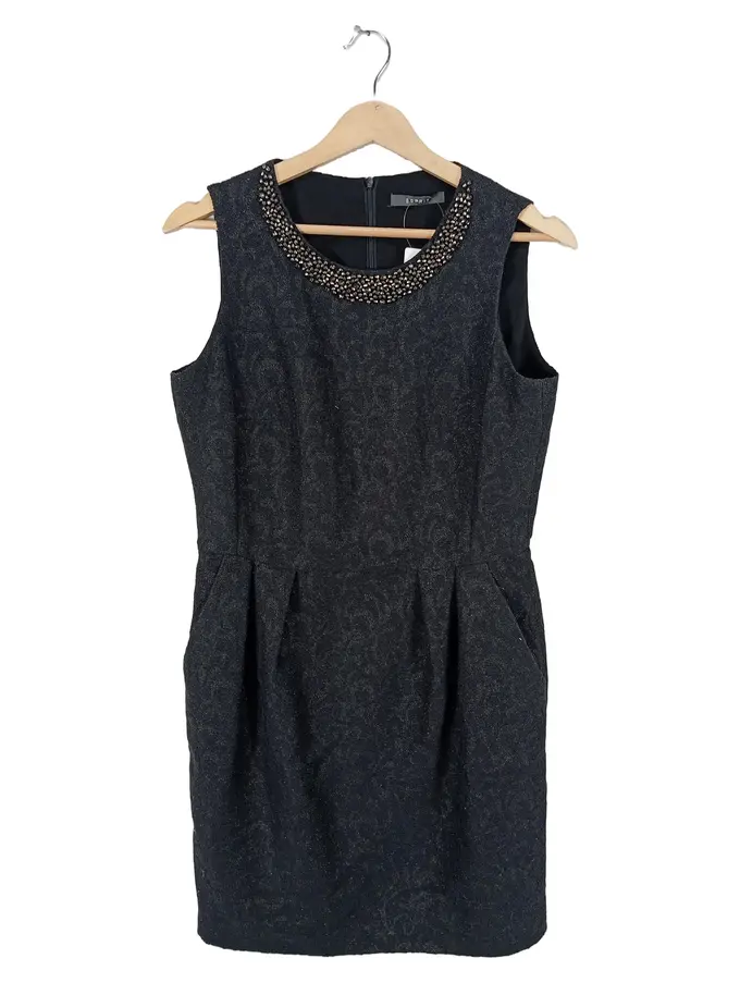 Damen Etuikleid Schwarz Gr. 38 M Perlenbesatz Elegant Festlich