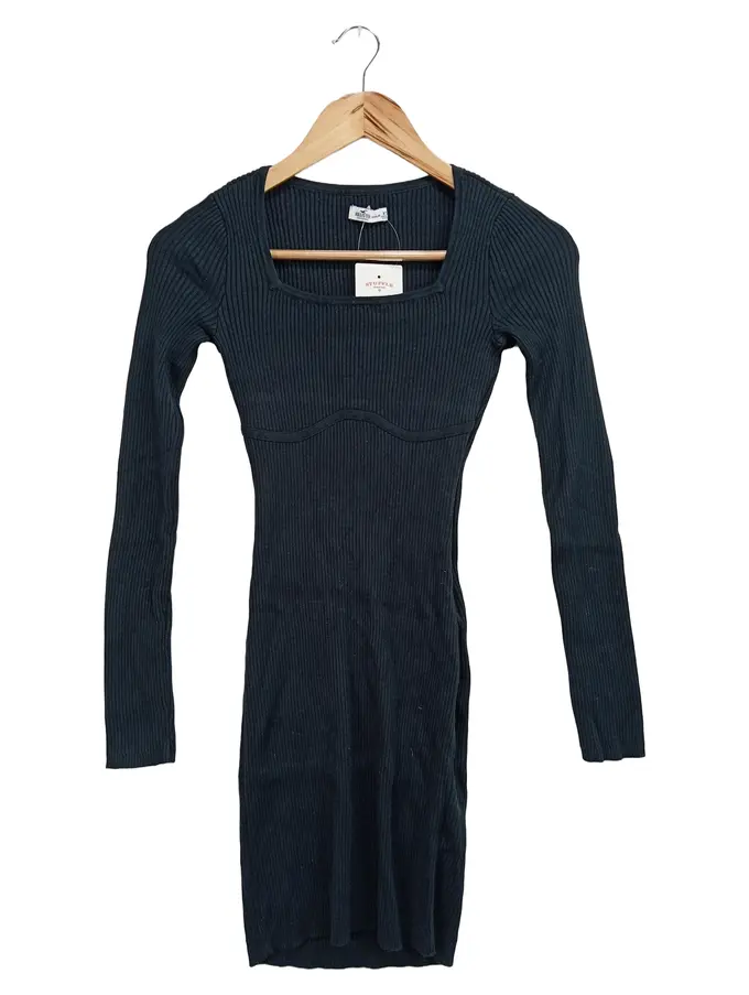 Damen Etuikleid XS Schwarz Rippstrick Elegant Modisch