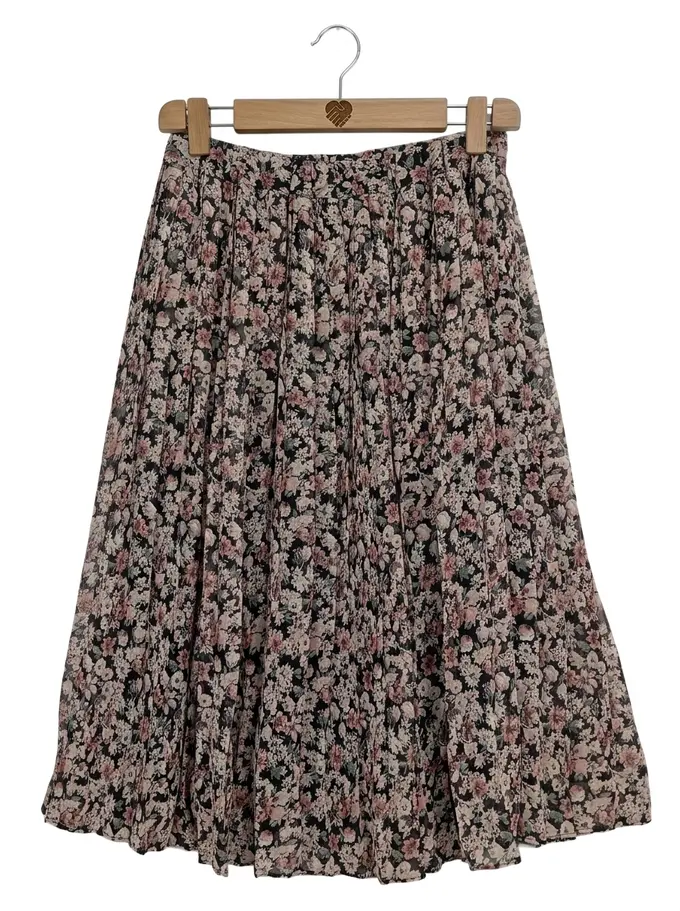 Damen Faltenrock Blumenmuster Midi Polyester Rosa Schwarz Gr. 38 M