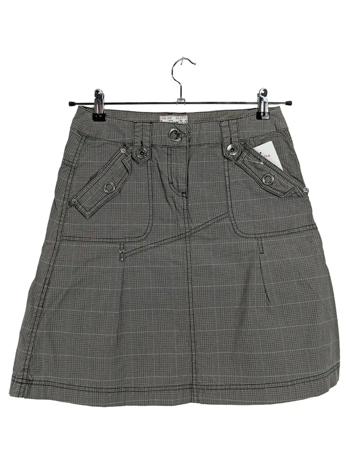 Damen Faltenrock Gr. 34/XS Grau Kariert Casual Rock