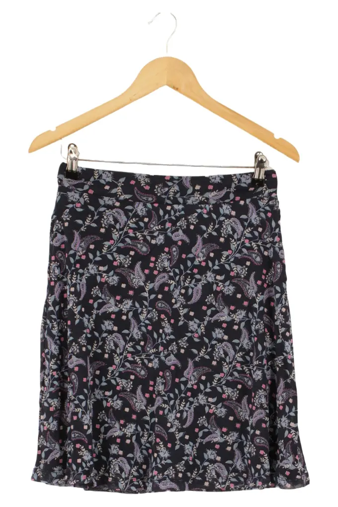 Damen Faltenrock Gr. 36 S Schwarz Floral Paisley Midirock