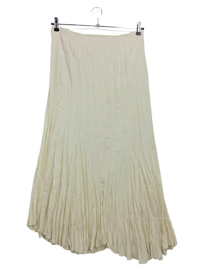 Damen Faltenrock Gr. 42/L Beige Elegant Vintage Maxirock Polyester