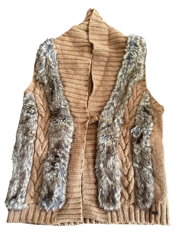 Damen Fellweste Gr. 38 Braun Casual Zopfstrick