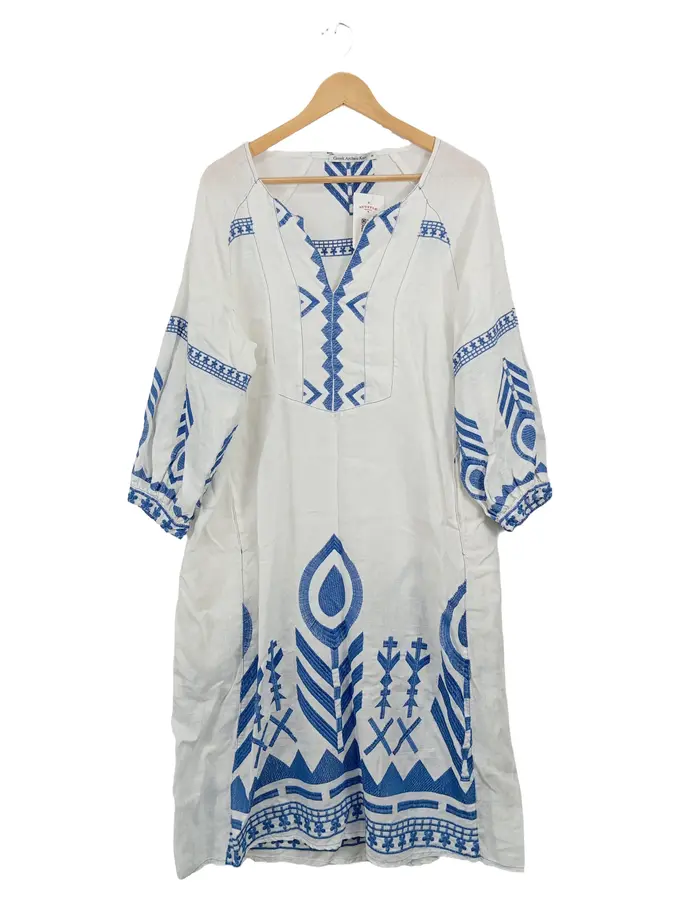 Damen Freizeitkleid 40;L Weiß Leinen Bohemian Stickerei