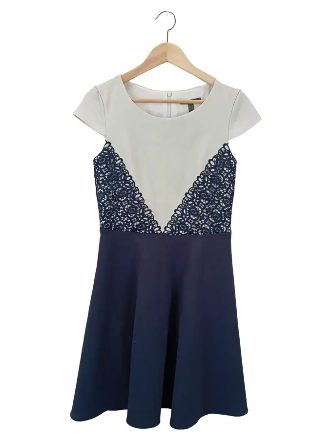 Damen Freizeitkleid Blau Gr. 36/S Elegant Lochmuster Spitze Midikleid