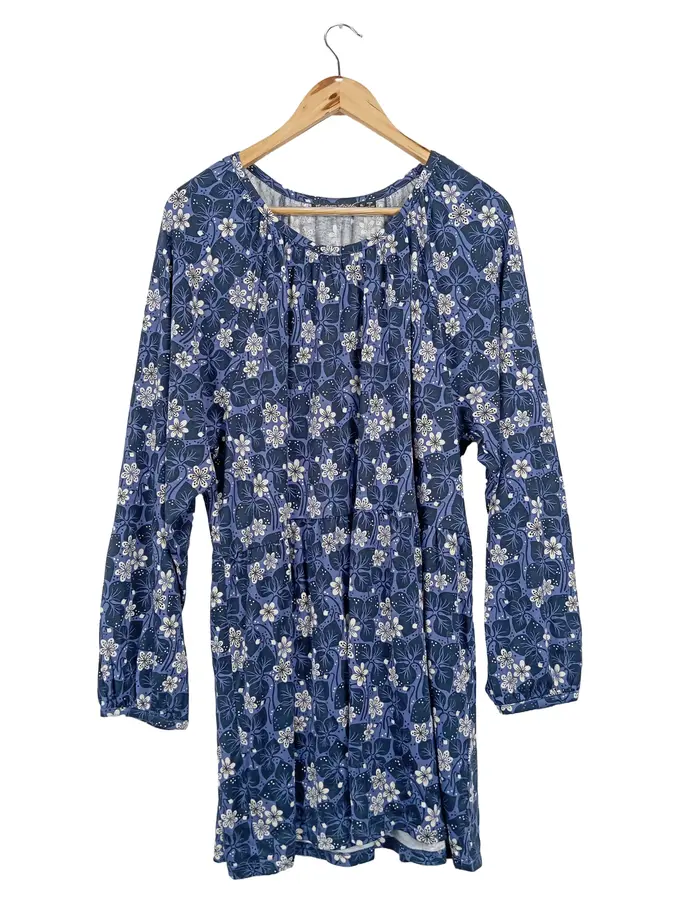 Damen Freizeitkleid Blumenmuster Blau Gr. XL Modal